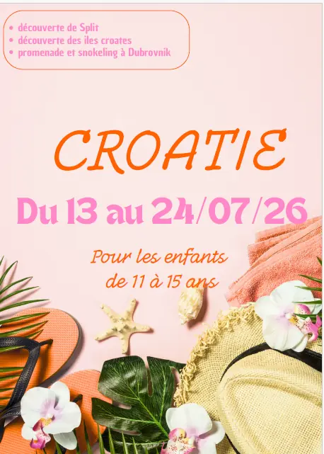 Colonie en CROATIE pour les 11/15 ans du 13 au 24/07/26