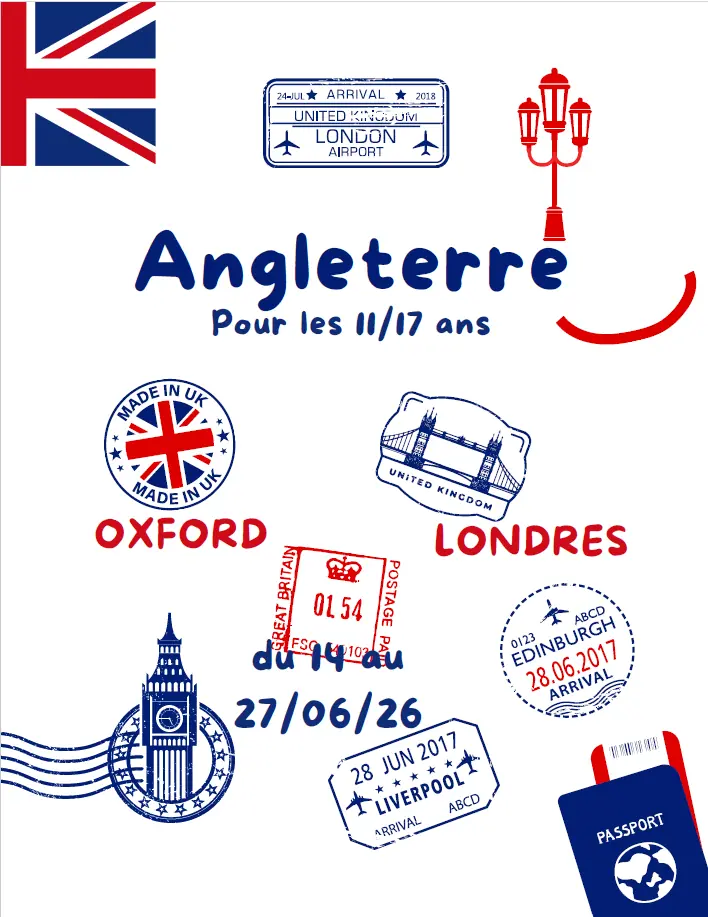 Séjours linguistique en Angleterre pour les 11/17 ans du 14 au 27/06/26