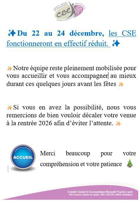 Ouverture CSE : semaine 52 / effectif réduit