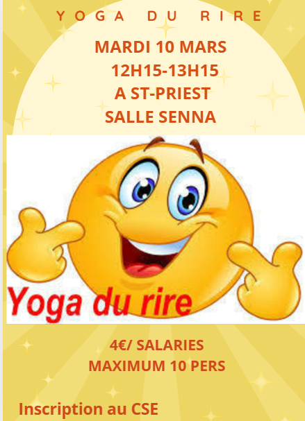 La Commission Bien-Etre vous propose une séance de Yoga Du Rire le 10  Mars