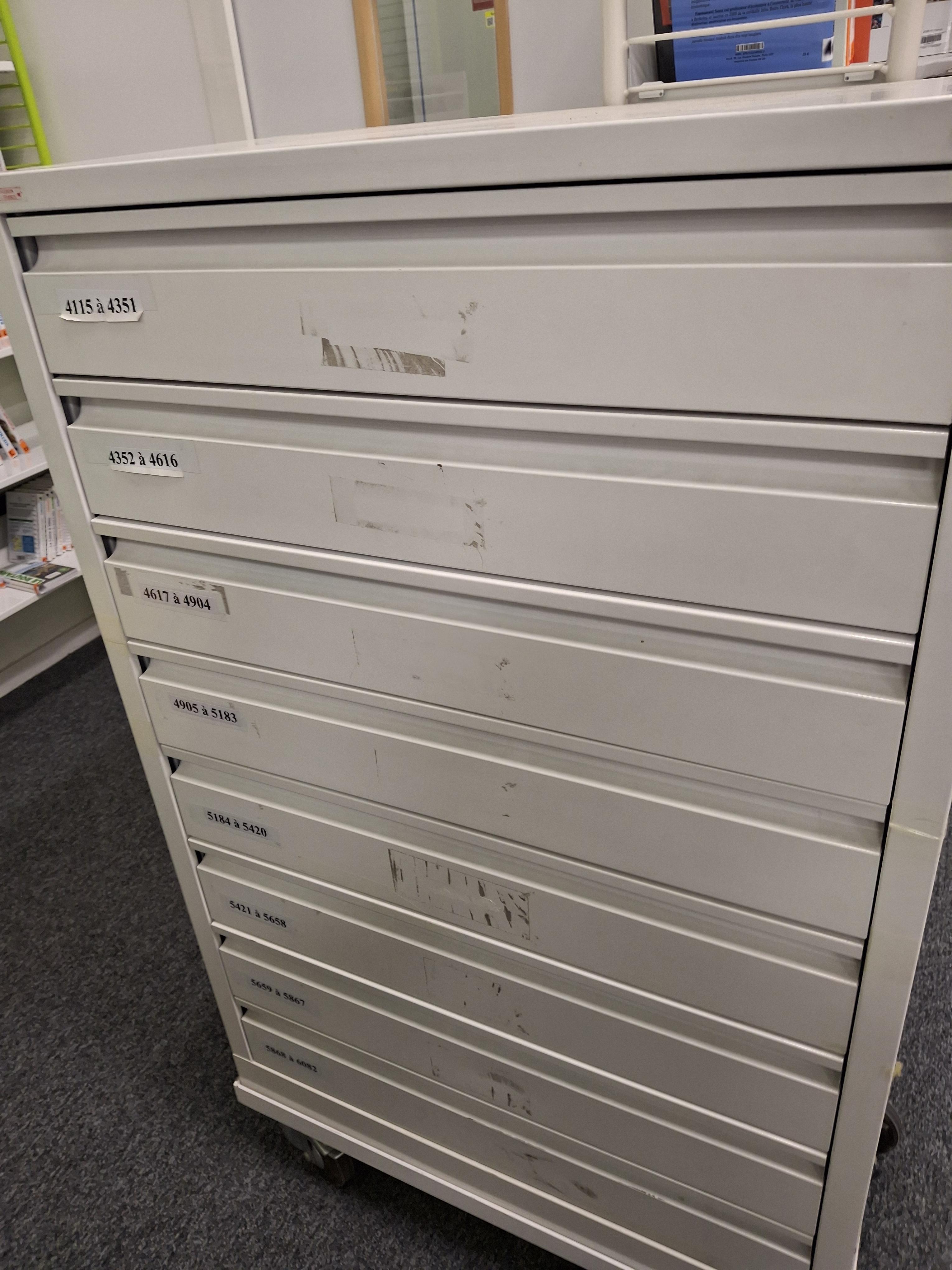 Et l'échanger en regardant le numéro de CD dans les meubles métallique que nous avons sorti pour l'occasion.